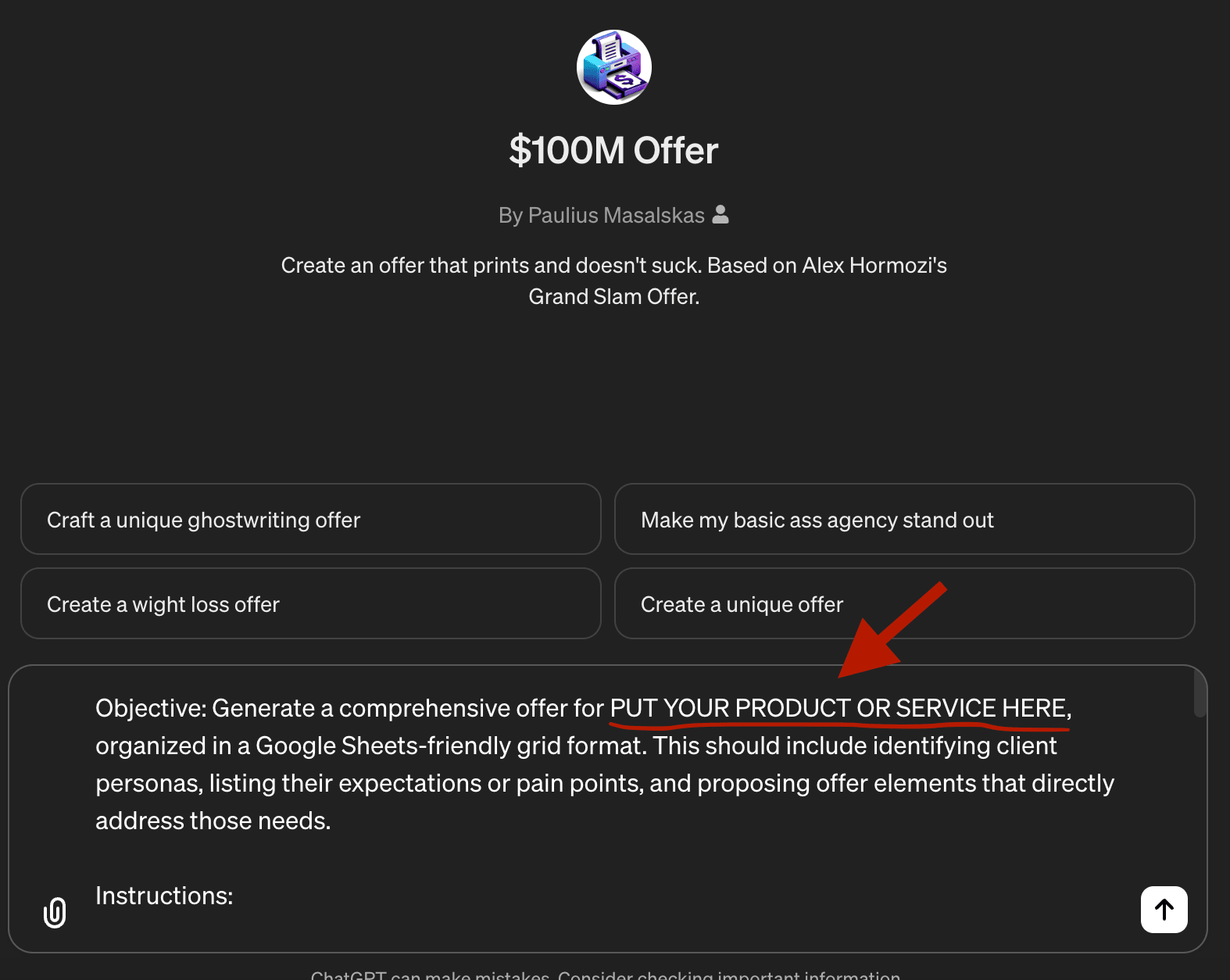 Scroll Down To Get Access To Your Offer Creation AI Prompt + Custom GPT