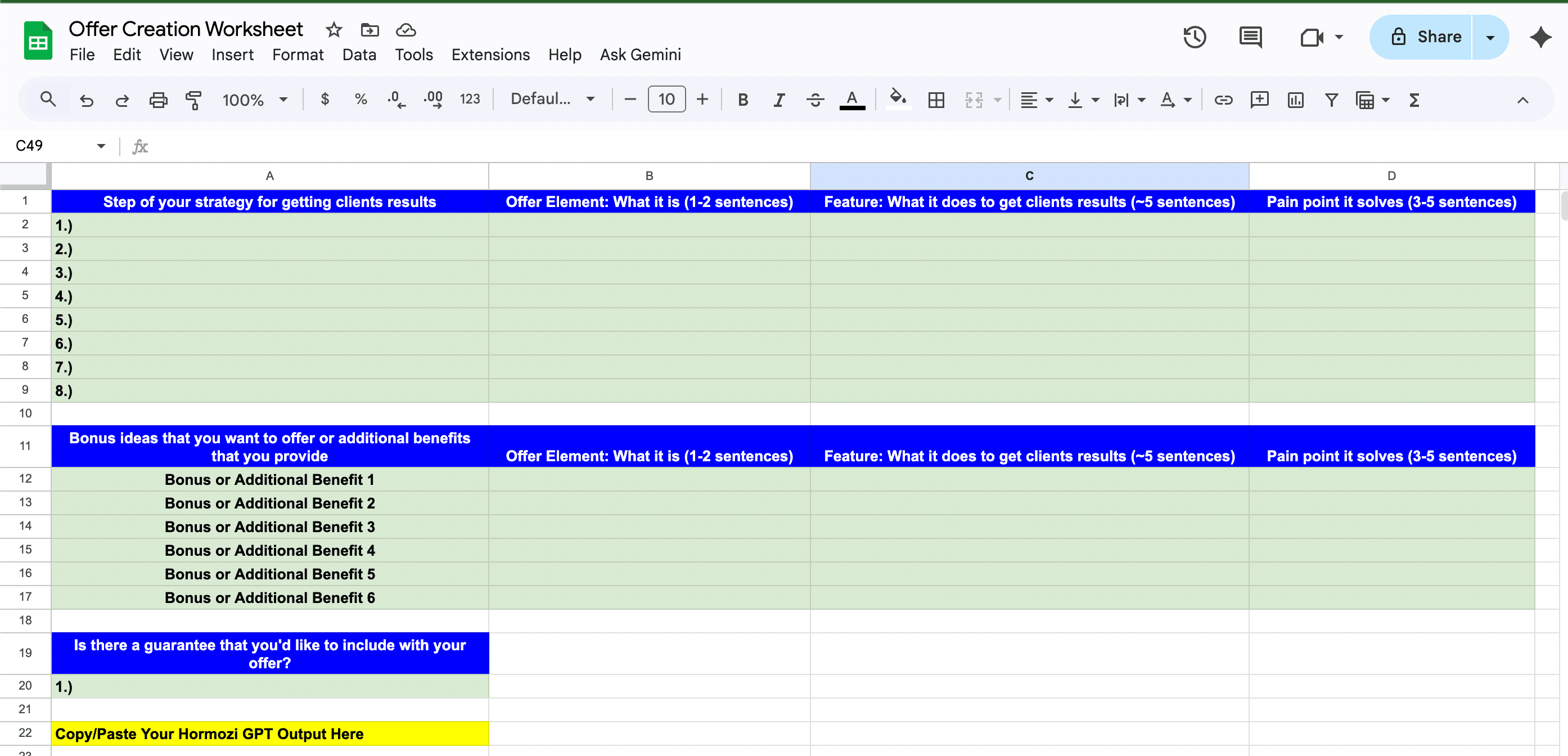 Step 2: Please click to download your Offer Stack Worksheet before continuing. You should use this Google Sheet when watching the video below.