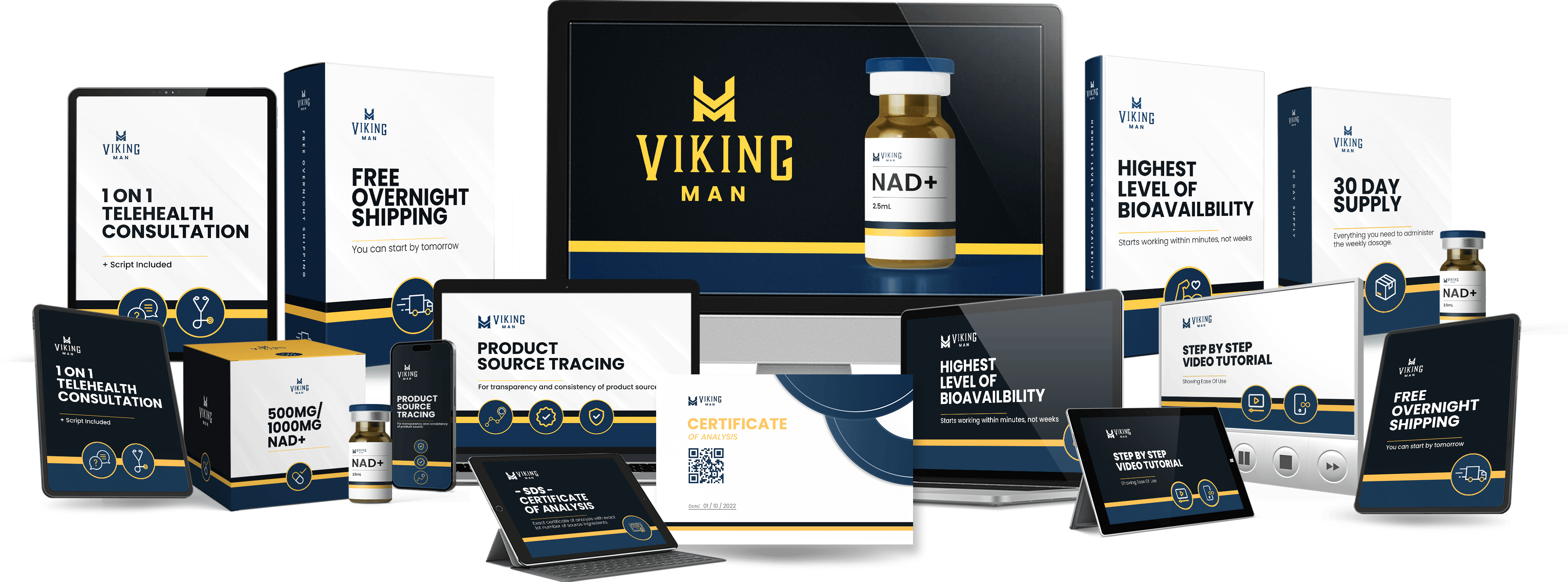 Sometimes clients come to us with physical products they're selling, like supplements. Here's an example of how they expanded their offer for a 30 day supply of something called NAD+. It's not just the supplement, you also get free overnight shipping, highest bioavailability, certificate of analysis... etc etc